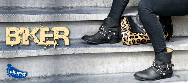As Botas Bikers são bastante parecidas com as Montarias, mas o que as difere é principalmente o tamanho, estando mais próxima ao tornozelo. Elas foram inspiradas nas botas utilizadas por motoqueiros por isso tem um estilo mais Rocker.