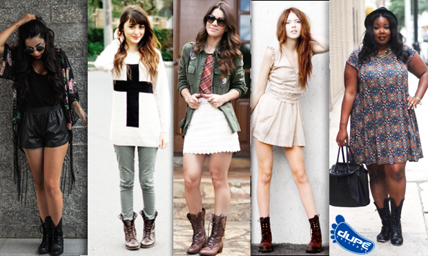 Como Usar Coturnos: Existem diversos modelos que podem combinar com tudo, mas para os mais clássicos a dica é usar peças mais leves, estampas e cores claras são bem vindas. Completa-lo com peças militares, jeans, meia calça e jaquetas dão um ar mais forte e vão arrasar também!