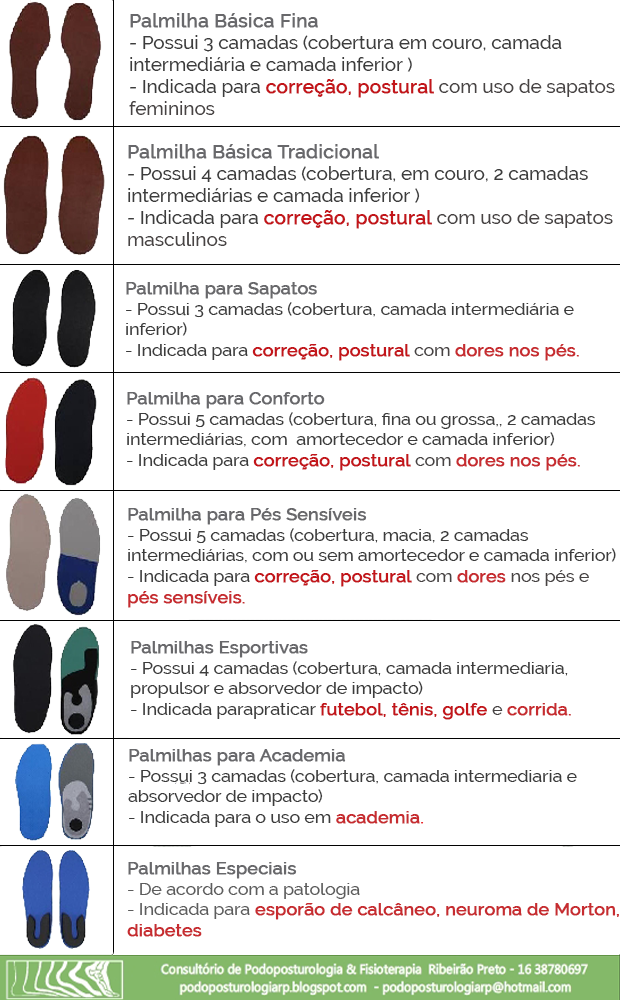 Essa tabela foi embasada em um artigo publicado pelo Consultório de Podoposturologia e Fisioterapia de Ribeirão Preto.