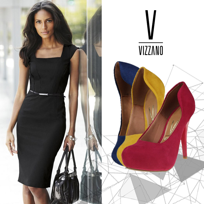 Clássico, tubinho preto decote reto, olhar 43 e para quebrar a banca um scarpin colorido, o que acha?!