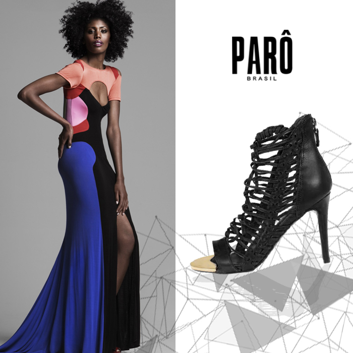 Fino e leve, uma estampa geométrica e um tecido gostoso como o chiffon merecem que seus pés fiquem à mostra numa linda sandália de amarrar.