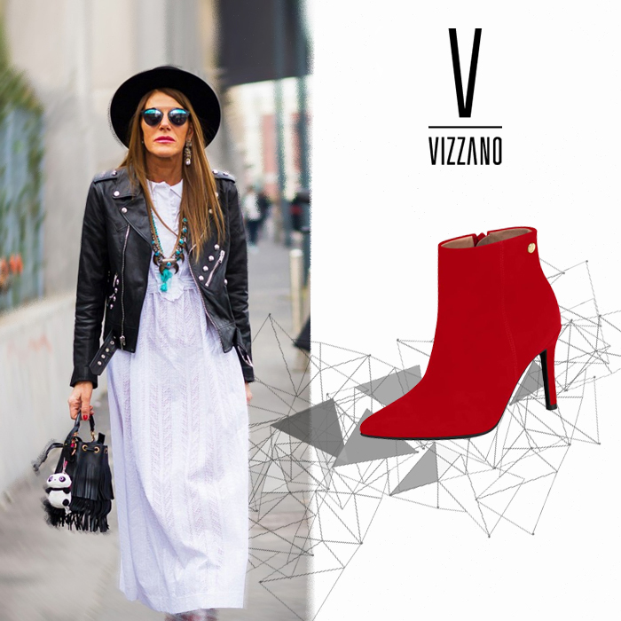 Querida, se você é mais tímida e reservada talvez estranhe um pouco esse visual, mas é interessante, a botinha vermelha apimenta o look rocker dando uma vida, iluminando todo o resto.
