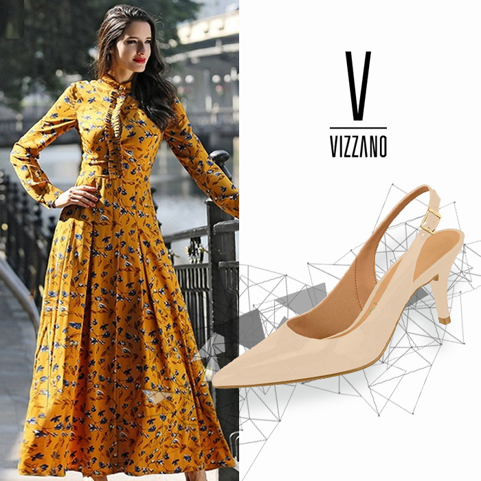 Gata, que tal um look princesa, com esse evasê, babados e um scarpin baixinho e confortável, essa vai para as clássicas.