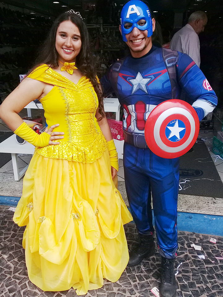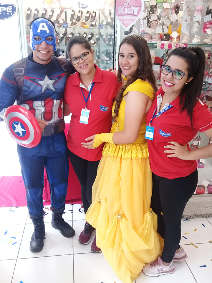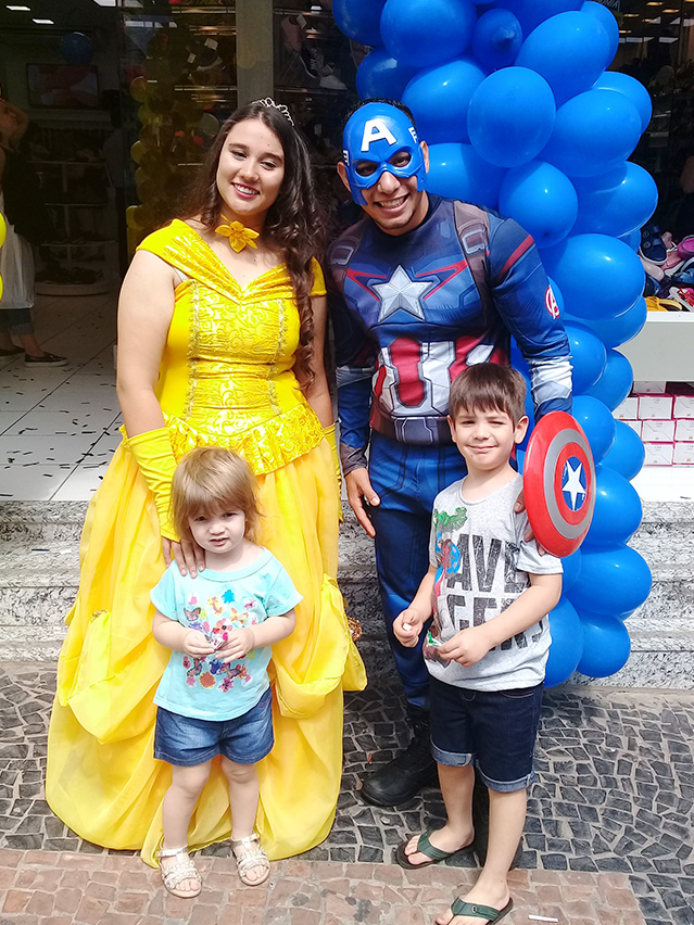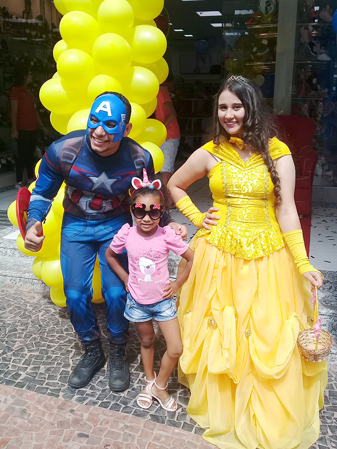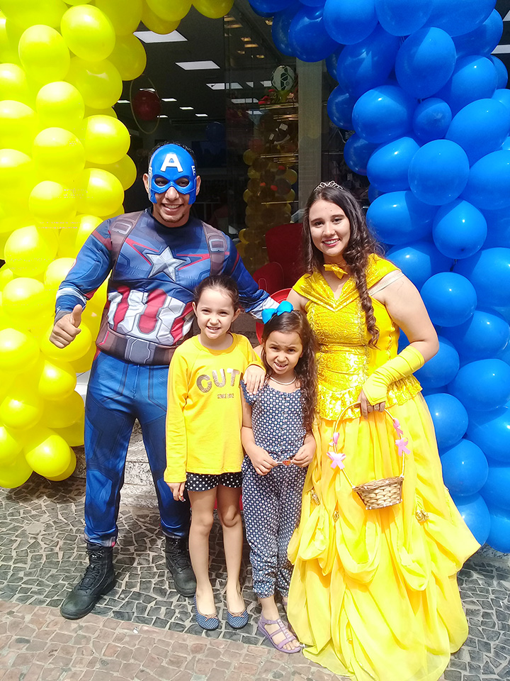 Do mundo da fantasia para o mundo real,contamos com a presença da Bela e do Capitão América! Teve muito click, música e guloseimas.